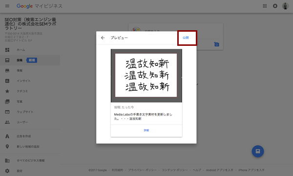 ということで、これが”Google投稿”の一通りという感じです。